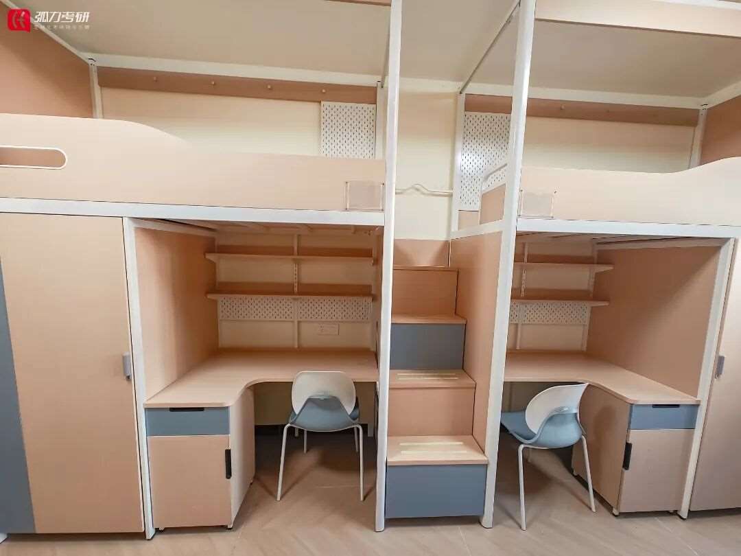 宿舍提供舒适住宿标准,连体床设计,上下床无声。房间内干净整洁,采光充足。