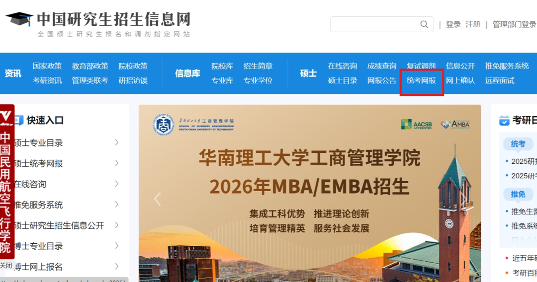 进入官网后,点击 “统考网报” ,找到“招生单位及报考点”