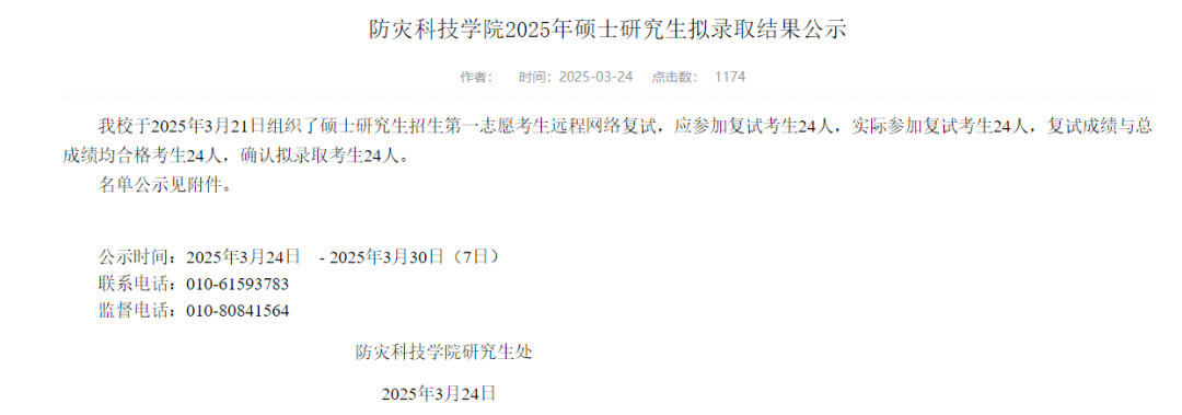 防灾科技学院第*志愿考生采用远程网络复试,24人参加复试,确认拟录取考生24人。