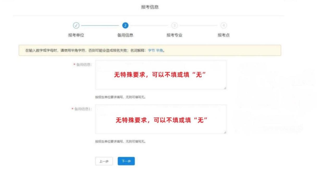 2、备用信息 备用信息无特别需求可以不填或填无。