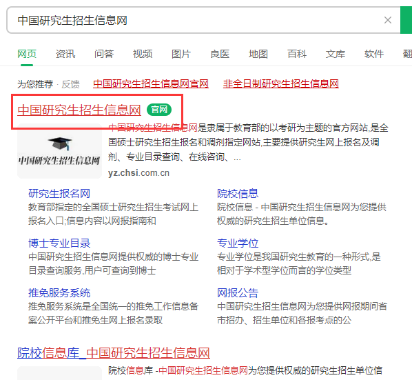1、先登录研招网,搜索“中国研究生招生信息网”;