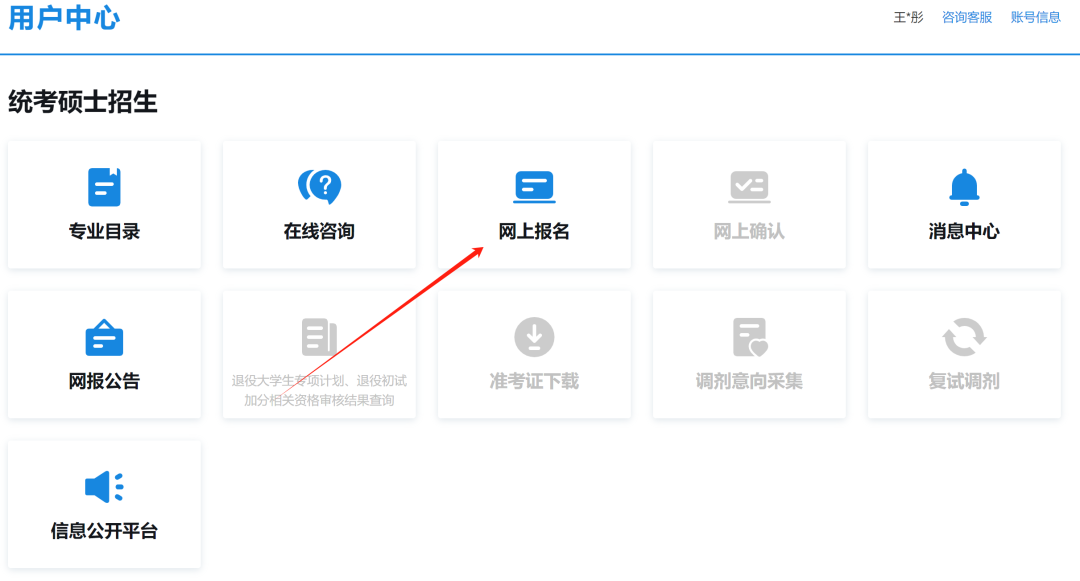 4、登录后选择【网上报名】,进入报名系统;