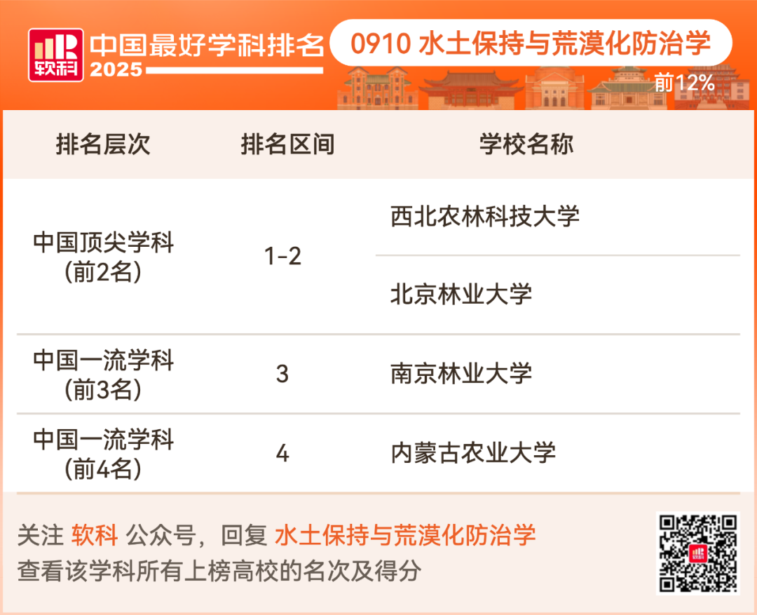 水土保持与荒漠化防治学排名前12%的高校: