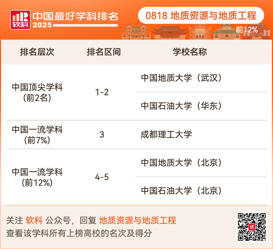 地质资源与地质工程排名前12%的高校:
