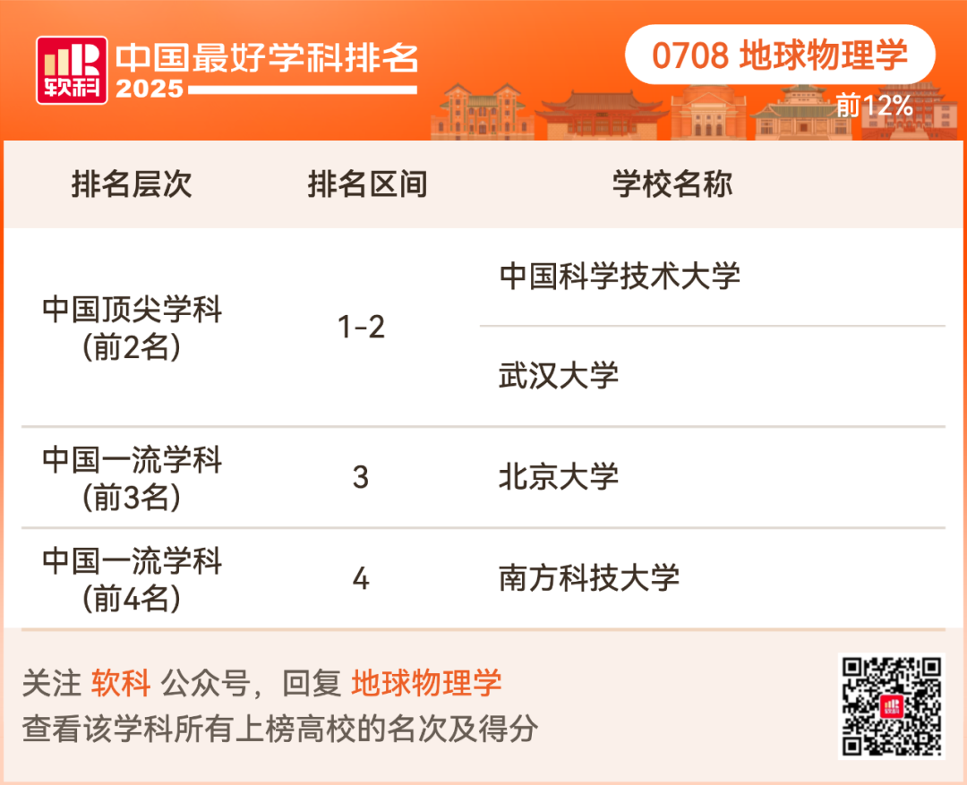 地球物理学排名前12%的高校: