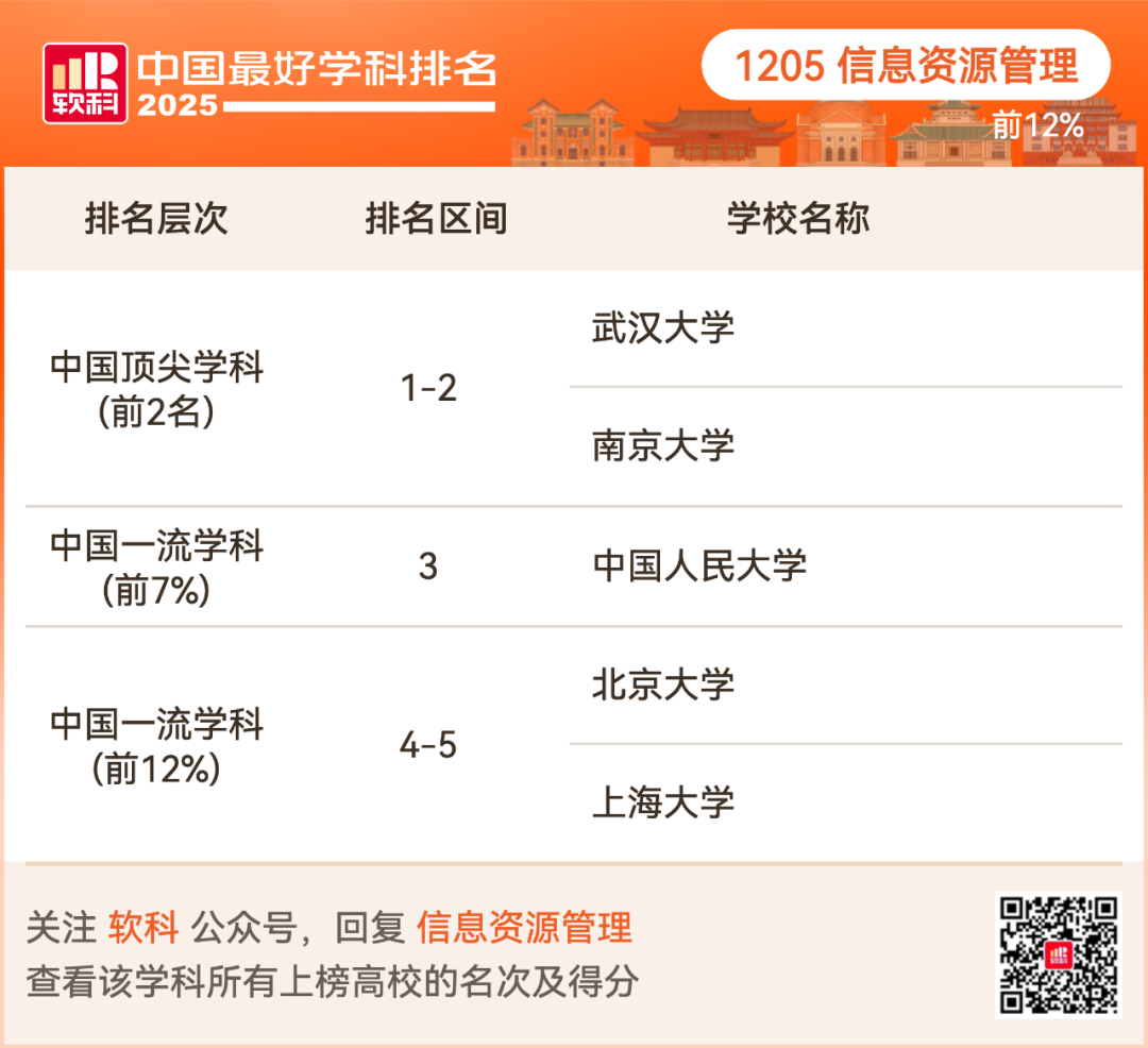 信息资源管理排名前12%的高校:
