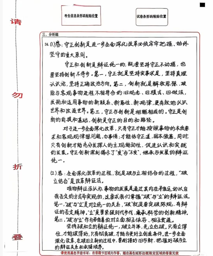 卷面分至少有2-5分,字迹工整、答题规范、分点论述、不乱涂乱画真的卷面真的会非常加分!每一笔都尽量工整,在接下来这段时间里练习既要写字速度又要保持卷面干净;答题时记得标号(1、2、3..),每个要点独立成段。