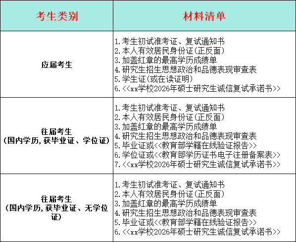 线下复试,通常需要提交或携带以下材料,请提前准备: